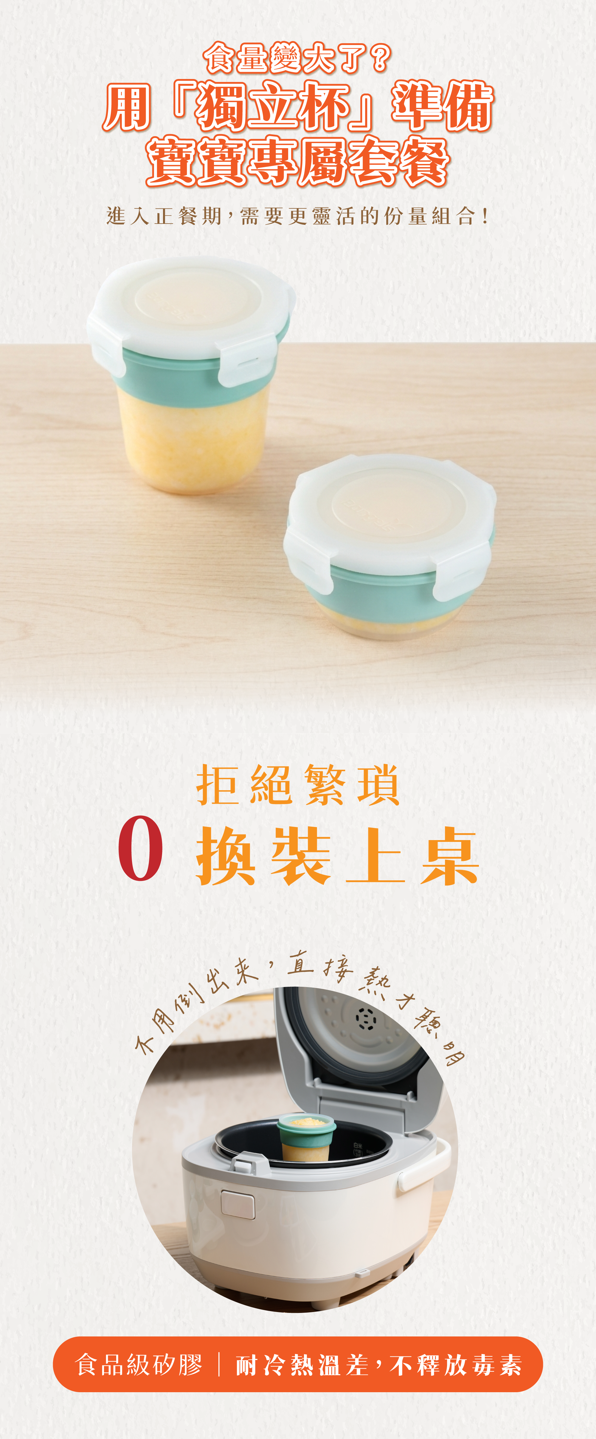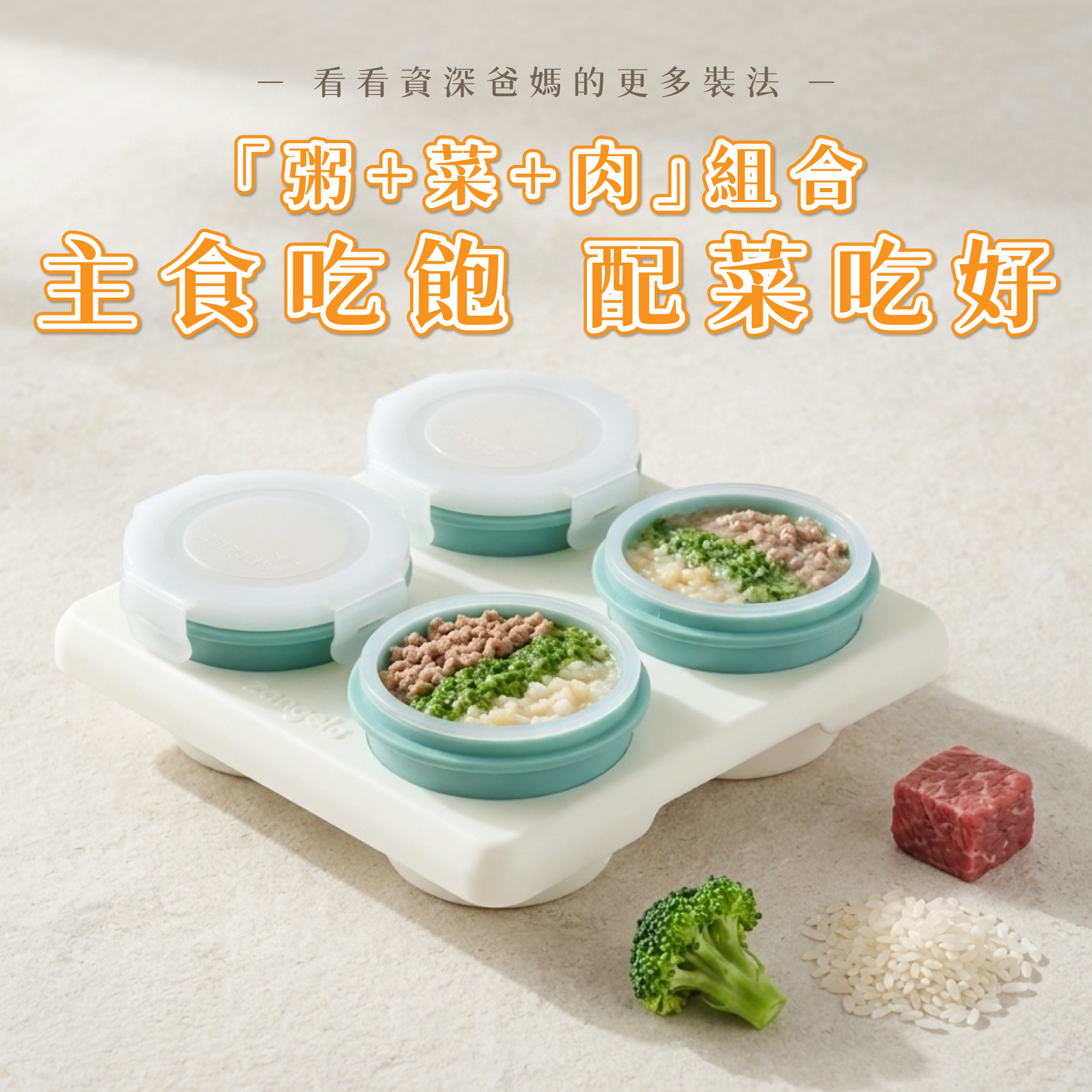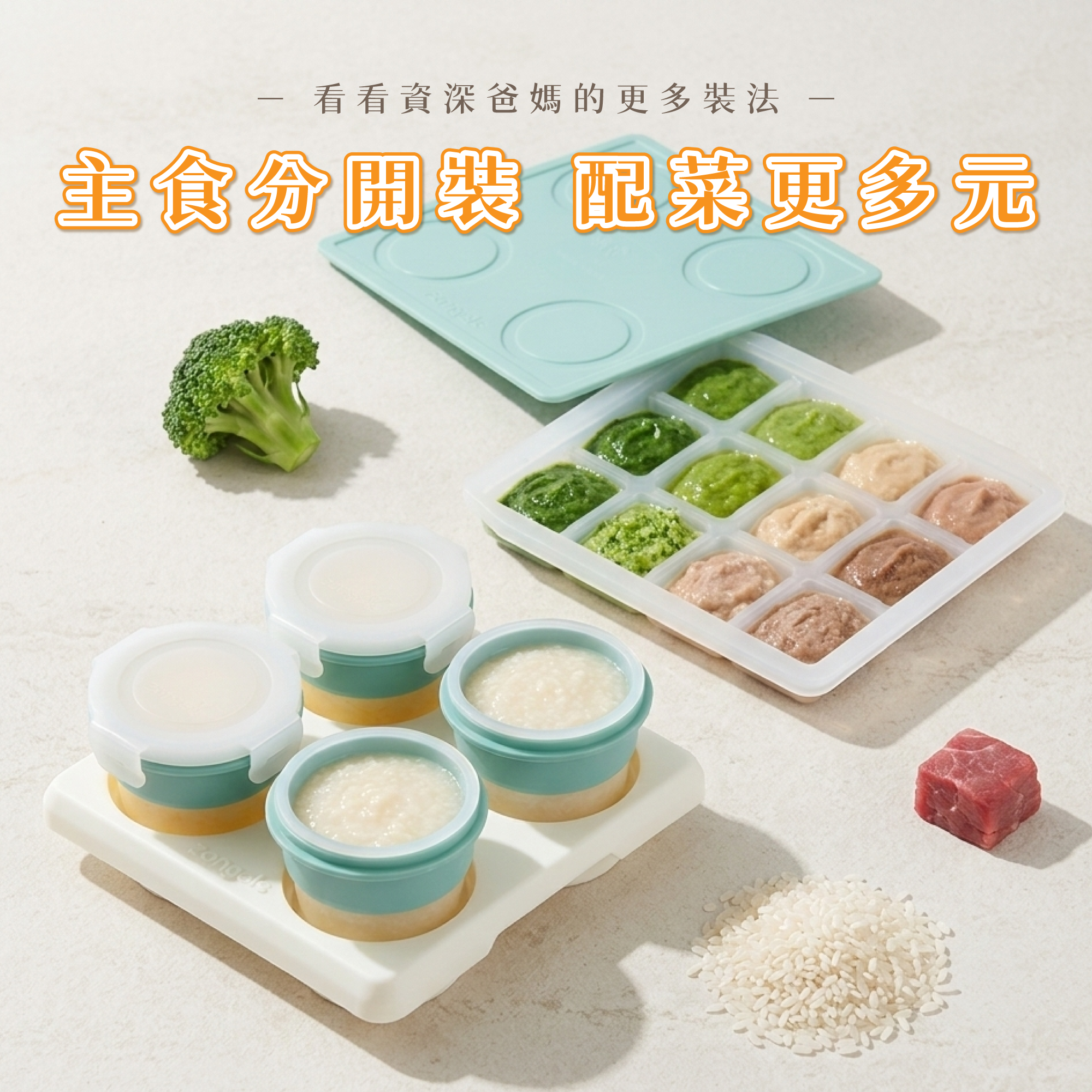 15ml 試敏期必備,多格不混搭,試敏更好紀錄;後期儲存試敏、蔬菜類,搭配其他容量製造均衡一餐。