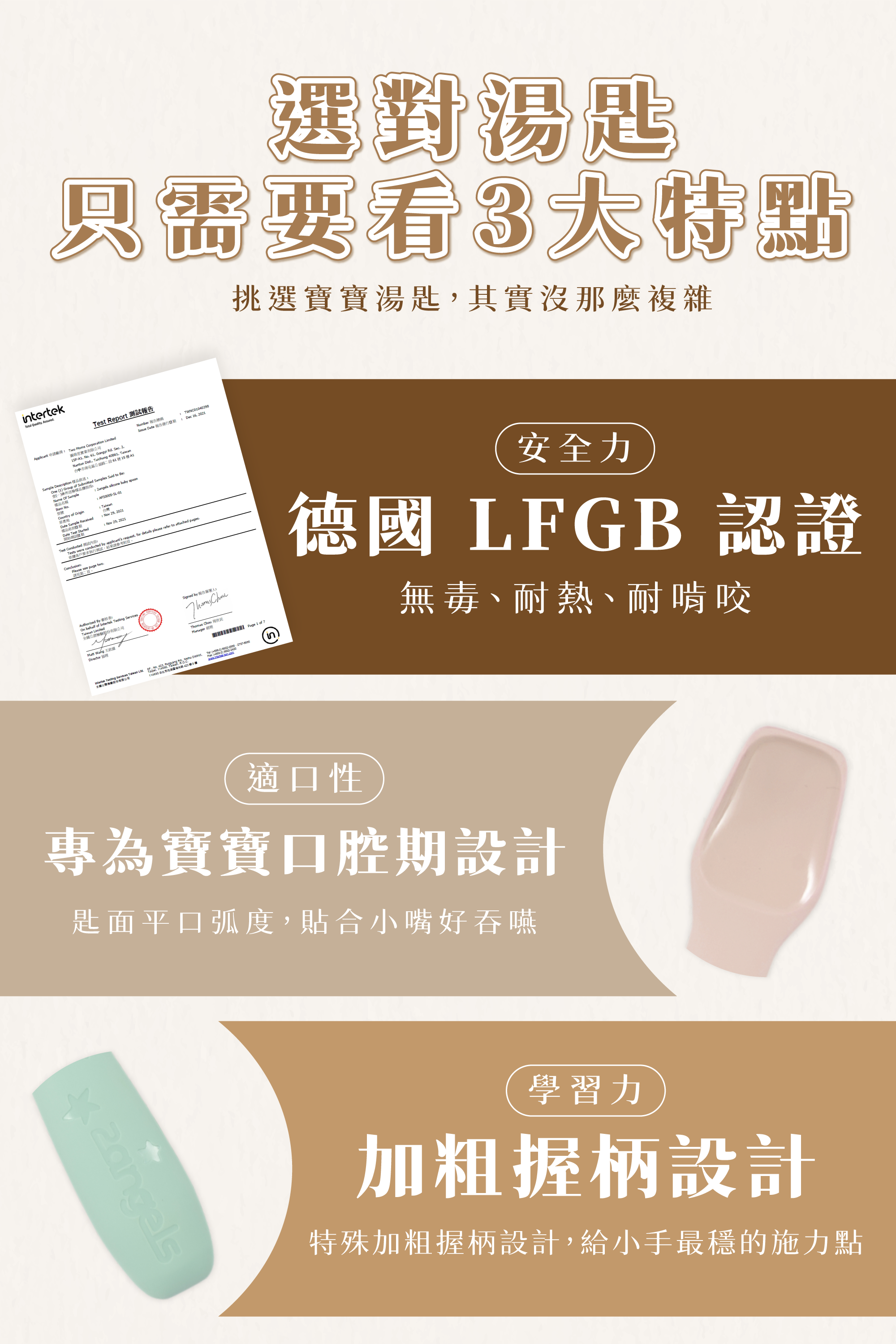 最高標準德國LFGB認證食品級矽膠,柔軟溫和入口,呵護寶寶稚嫩牙齦,
