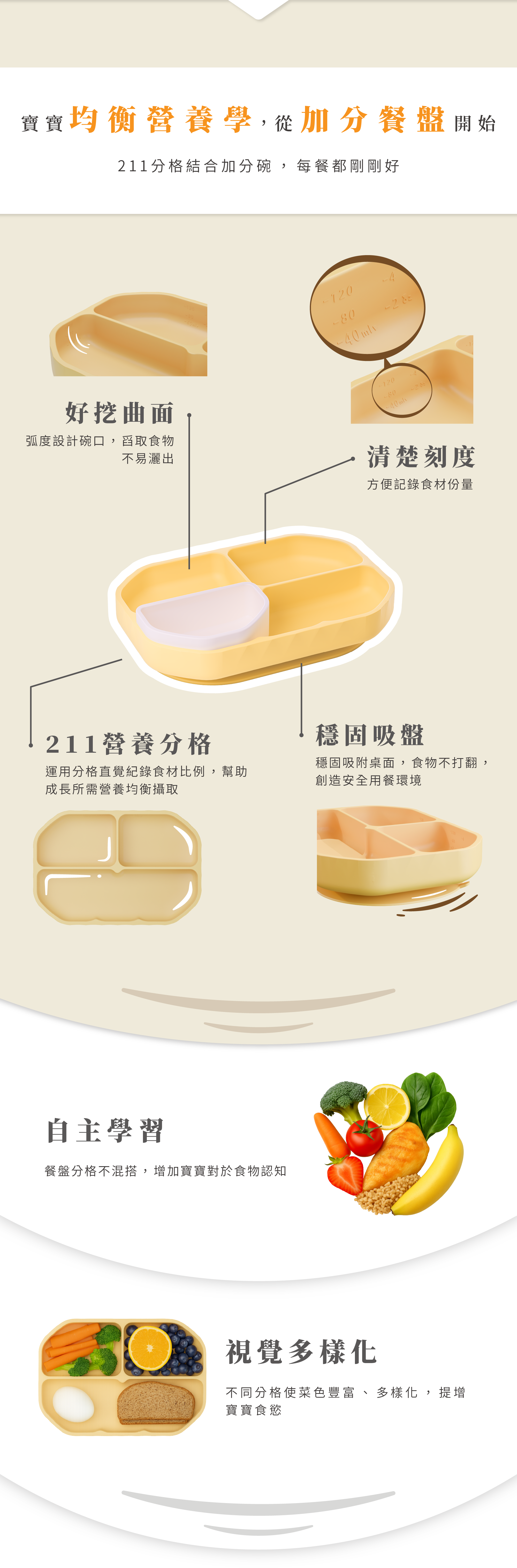 三格設計幫助掌握均衡份量,寶寶看得見、吃得對,