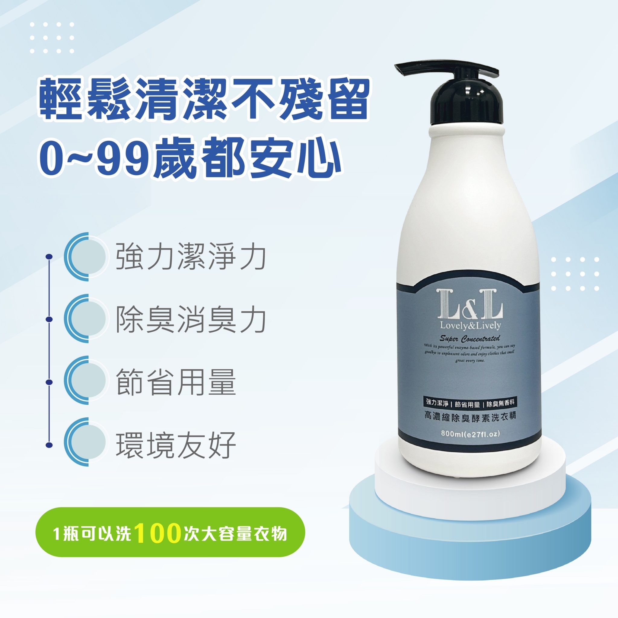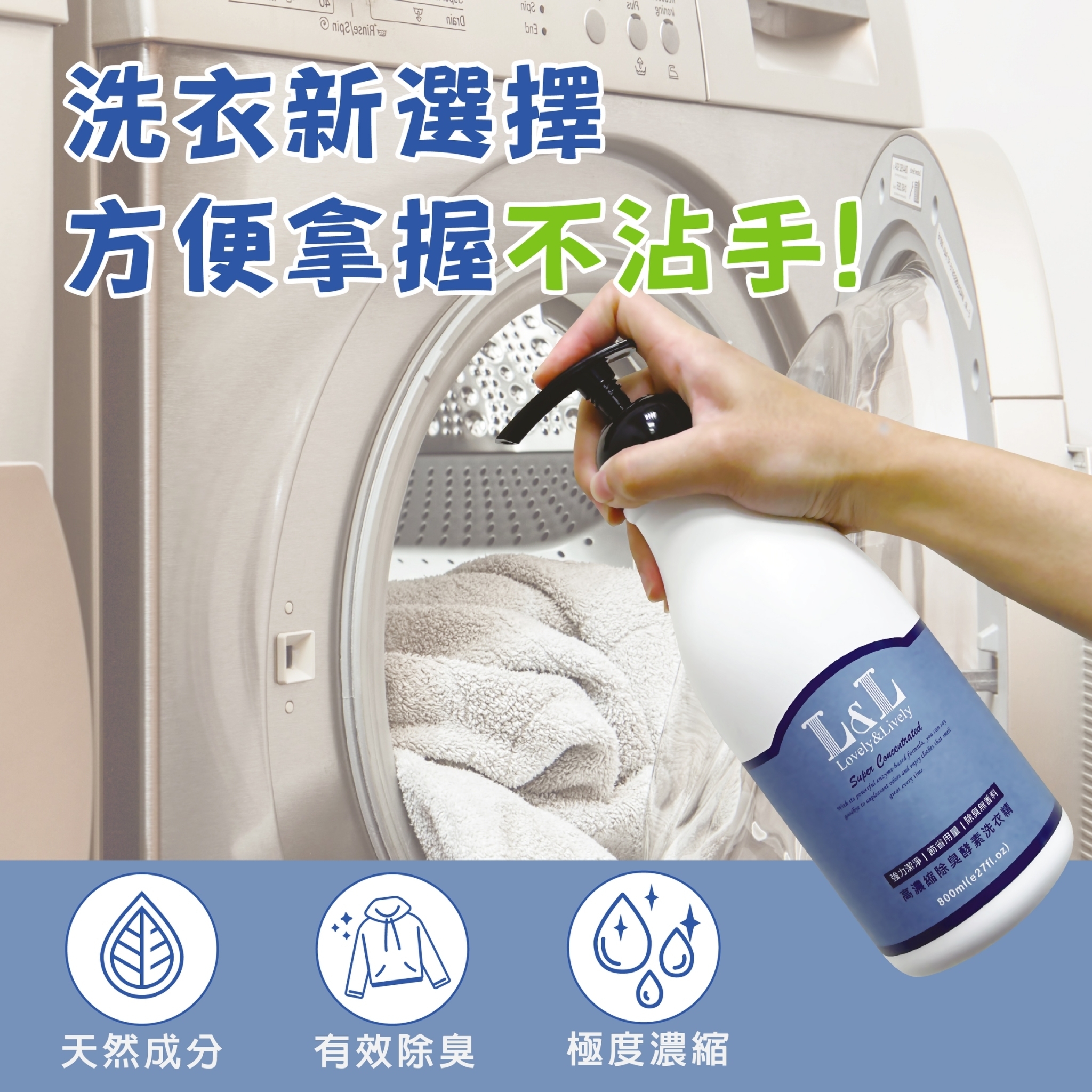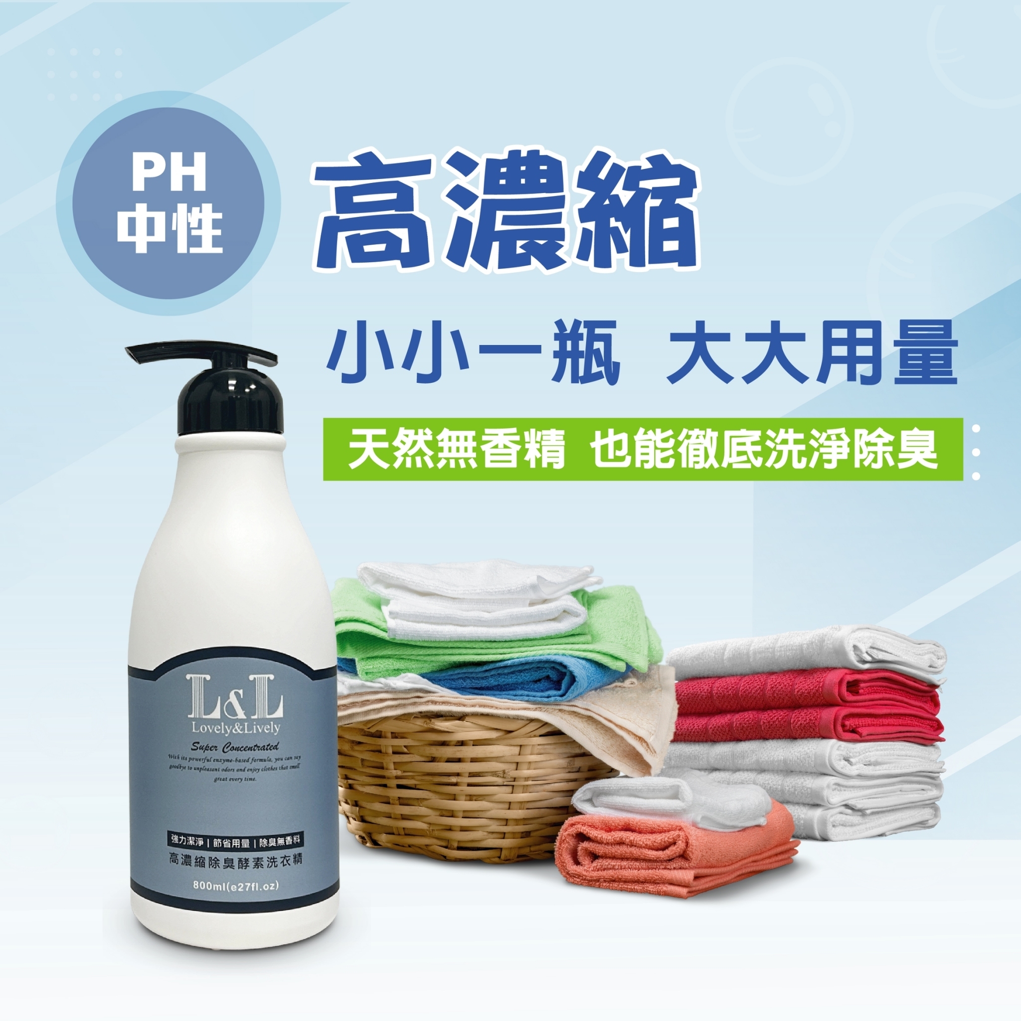 高濃縮除臭酵素洗衣精採用高效潔淨配方。