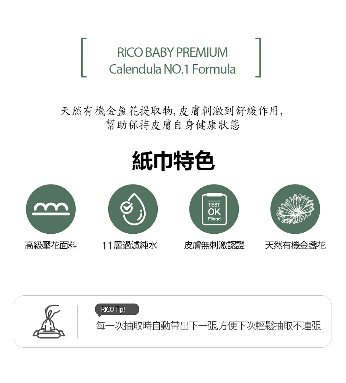 韓國RICO baby |金盞花有機天然濕紙巾|Premium 超厚款-隨身包20抽